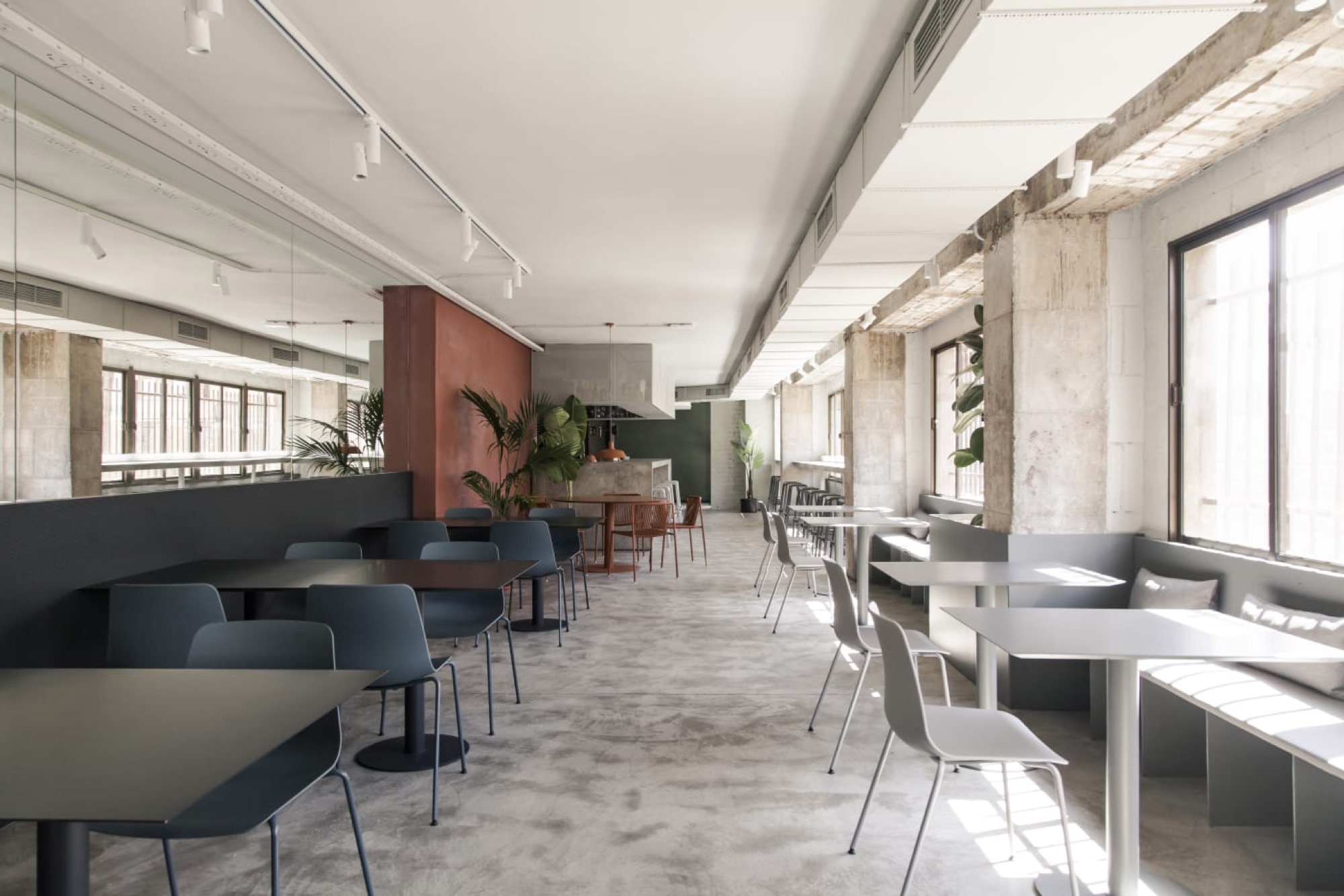 El objetivo en este proyecto era conseguir incrementar la sensación de confort, disminuir el efecto cóctel, producido por las grandes cristaleras. Se consigue la absorción acústica adecuada, rebajar la reverberación y crear un ambiente especial para tomar una buena cerveza o una cena, en muy buena compañía. Utilizando el sistema de placas de arcilla, con acabado de mortero de arcilla con adición de pigmentos naturales, formulados especialmente para este proyecto. La calidez de los morteros de arcilla contrasta con el brutalismo del resto del restaurante lo que le da un carácter especial.