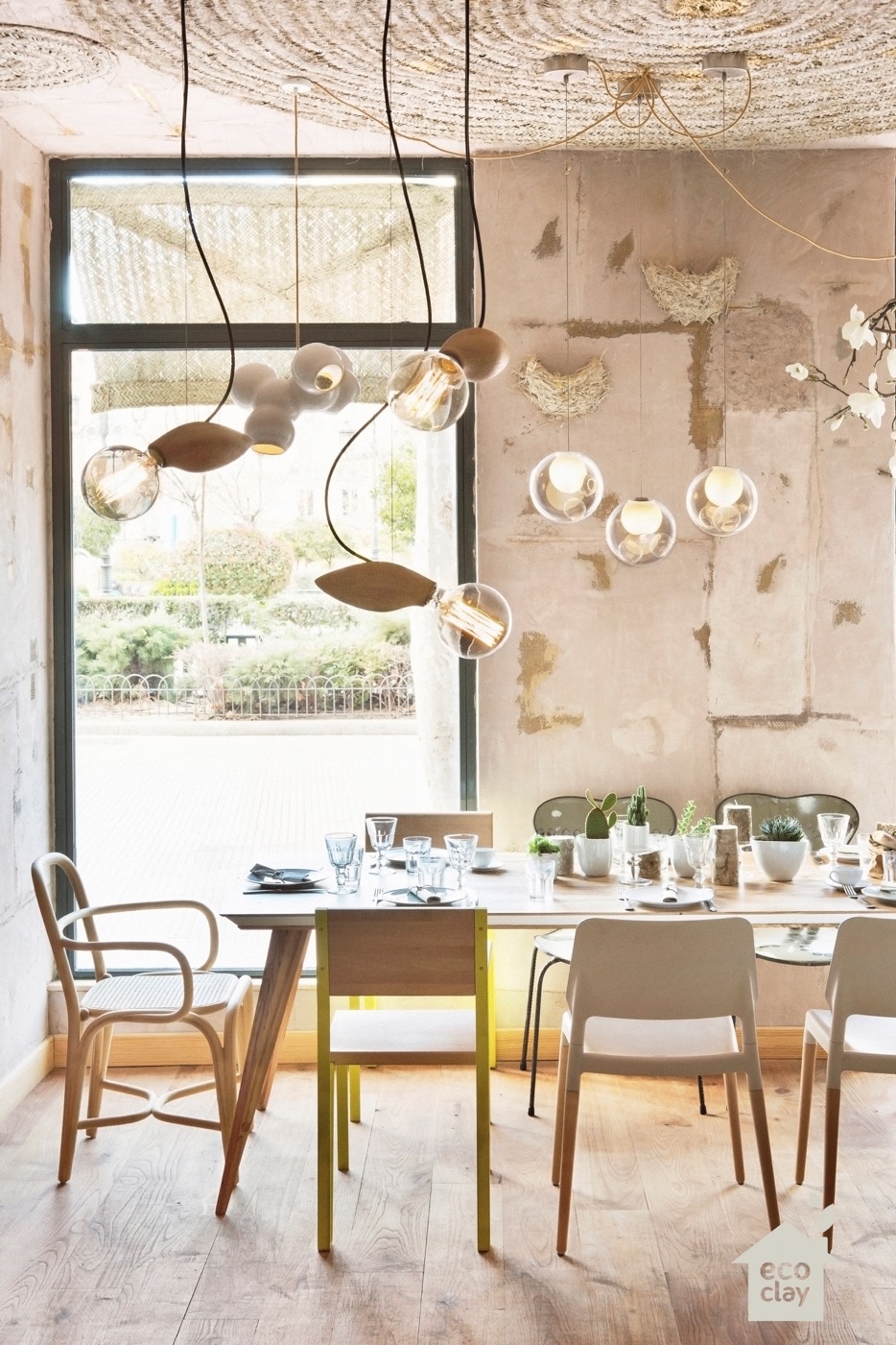 Nos encanta el restaurante Mama Campo su creatividad, diseño, confort con todo ello aún se disfruta más de vuestra excelente cocina. Para nosotros fue un placer trabajar con vosotros en los revestimientos de las paredes, porque fuisteis los primeros que no quisisteis una aplicación de los morteros de arcilla convencional, utilizando ecoclay ACABADO Ártico. Atreverse y romper con lo establecido, no os podéis imaginar la de personas que han querido imitar las paredes imperfectas de mama campo… Esa imperfección buscada es un sello de identidad y estamos muy contentos de que nuestras arcillas formen parte de ese gran lienzo que es vuestro restaurante.